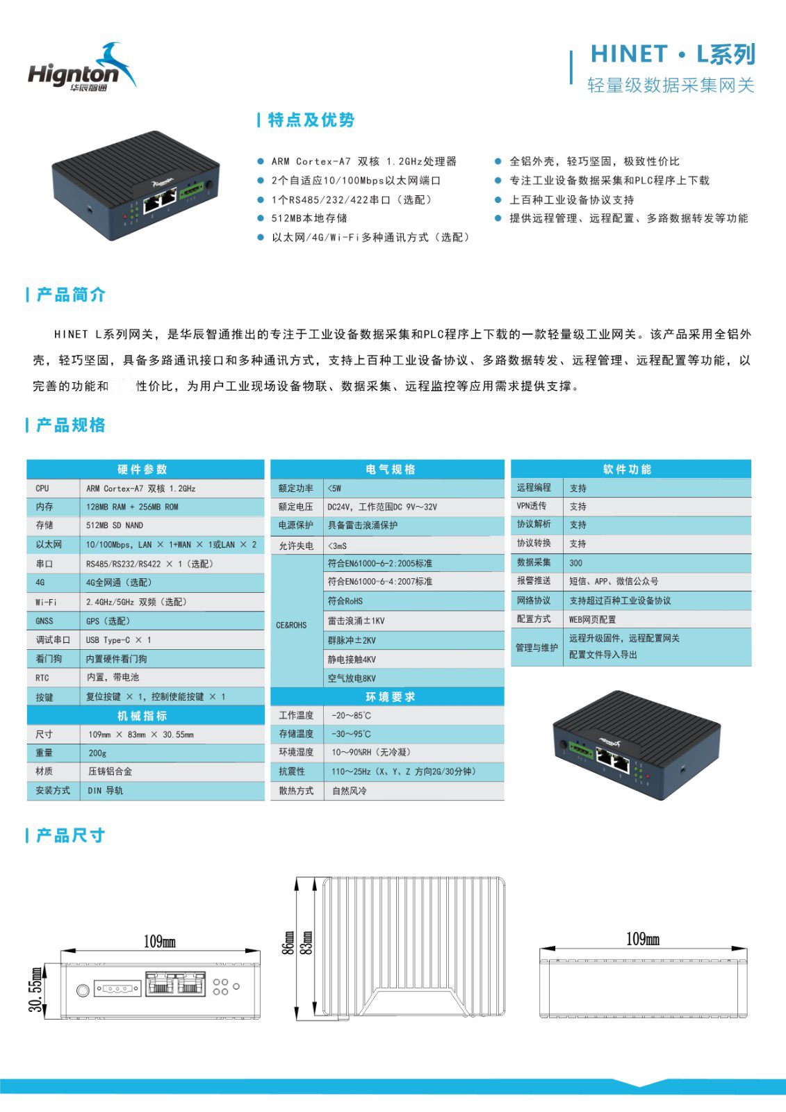 HINET L系列网关,是K8凯发(中国)智通推出的专注于工业设备数据采集和PLC程序上下载的一款轻量级工业网关。该产品采用全铝外 壳,轻巧坚固,具备多路通讯接口和多种通讯方式,支持上百种工业设备协议、多路数据转发、远程管理、远程配置等功能,以 完善的功能和性价比,为用户工业现场设备物联、数据采集、远程监控等应用需求给予支撑。